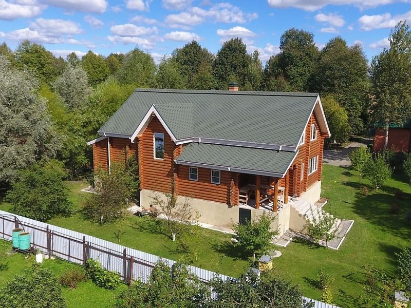 Натуральный темно-зеленый цвет черепицы хорошо смотрится на фоне любого природного ландшафта. Глубину оттенка дополняет строгая гексагональная форма лепестков и трехмерный эффект тени. Кровля гармонично дополнит фасады, выполненные под натуральный брус, в сливочных и фисташковых тонах.