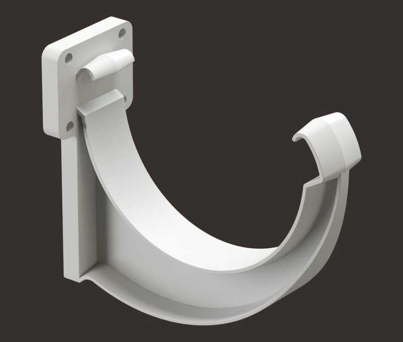 Предназначен для крепления желоба на кровлях с лобовой доской, либо в комплекте с удлинителем на кровлях без лобовой доски