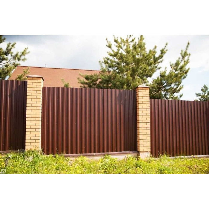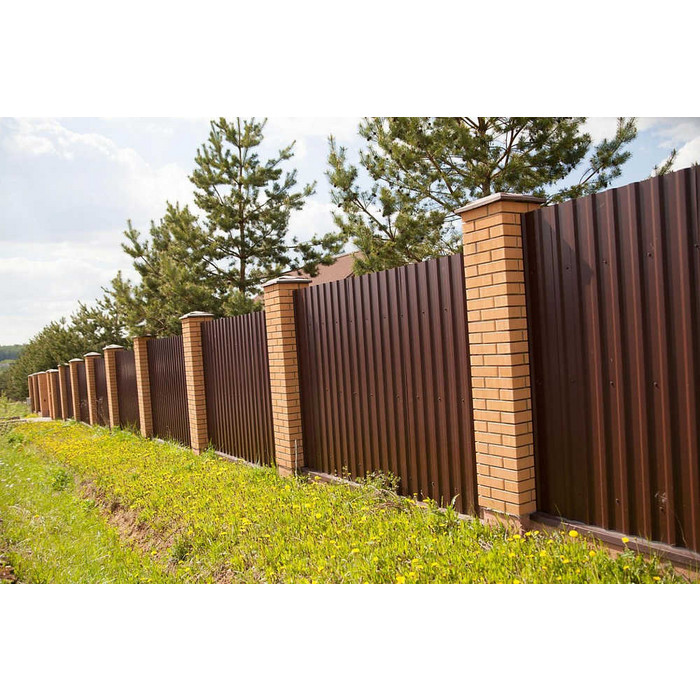 Профилированный лист МП-20x1100-B (VikingMP-01-8017-0,45) широко применяется в Кронштадте для монтажа забора. Изначально он представляет собой стальной оцинкованный лист с покрытием. Общая толщина металла с оцинковкой и декоративно-защитным покрытием составляет 0.45 мм.После проката на специальном оборудовании сталь приобретает рисунок из ритмичных волн. Такая форма придает профилю несущую способность.