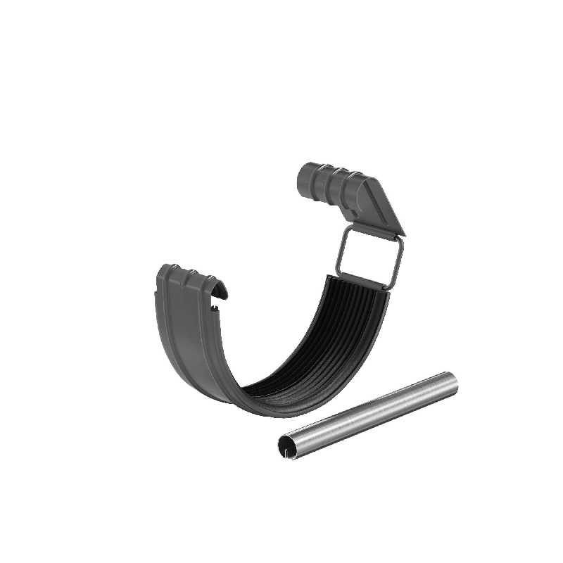 Соединитель желоба в комплекте предназначен для последовательного соединения двух желобов, либо желоба и угла (внешнего или внутреннего). Предотвращает протекание воды в местах соединений и является компенсатором линейного расширения металла. Имеет полноценный резиновый профиль, благодаря которому не требует мер по дополнительной герметизации. Наличие универсального замка (пряжки) позволяет использовать его многократно и исключает возможности его поломки при частом открытии или закрытии. Наличие ребра жесткости придает детали дополнительную прочность. Соединитель желоба поставляется в комплекте с элементом жесткости, который представляет собой трубку из оцинкованной стали, либо из меди, толщиной 0,7 мм, которая по своей конструкции повторяет завиток желоба.С помощью элемента жесткости на 50% увеличивается жесткость конструкции в местах соединения желобов, что упрощает работу по расчету и установке водосточной системы, а также не требуется установка дополнительных крюков в местах стыка желобов (стыковку желобов можно производить в любом месте, вне зависимости от шага крюков).